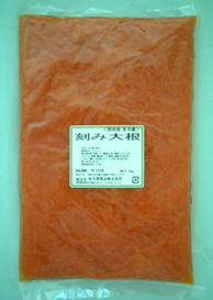 | 商品特徴 | 皮むき大根を越後味噌に漬け食べ易くスライスした商品です。3ミリ、5ミリ、6ミリの厚さが指定できます。 | 皮むき大根を越後味噌に漬け歯切れのよさと、しっとり感を残し塩度を7.5%に抑えています。3本入りで1本約26センチです。 | 皮むき大根を越後味噌に漬け細かく刻みました。おにぎりの具材として、お使いください。 | 歯切れの良い胡瓜を越後味噌に漬け込みました。 1キロ当たり20本前後 スライス3ミリ1000枚前後 |